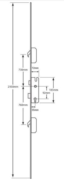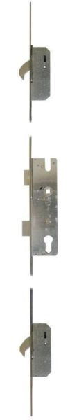 Keywind operated latch & deadbolt multipoint lock system by Winkhaus with 92mm centres, 20mm wide radius faceplate, a single spindle and 2 hooks. Supplied without keeps. Centre and extension keeps are available to purchase separately.