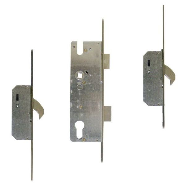Keywind operated latch & deadbolt multipoint lock system by Winkhaus with 92mm centres, 20mm wide radius faceplate, a single spindle and 2 hooks. Supplied without keeps. Centre and extension keeps are available to purchase separately.