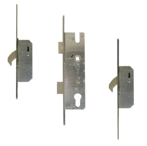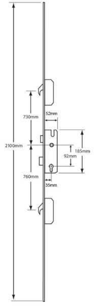 Keywind operated latch & deadbolt multipoint lock system by Winkhaus with 92mm centres, 16mm wide square faceplate, a single spindle and 2 hooks. Supplied without keeps. Centre and extension keeps are available to purchase separately.