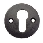 Euro escutcheon.Size: 50mm diameter.Finish: Antique Black.