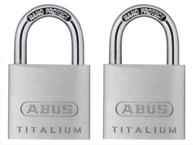 The ABUS 64TI Series TITALIUM Padlocks are ideal for medium to high risk of theft, recommended for a wide range of security requirements. All models in this series have a paracentric keyway and chrome plated cylinder cores. Hardened steel shackle, 30mm and above, with NANO PROTECT shackle coating which assures security and high corrosion resistance.