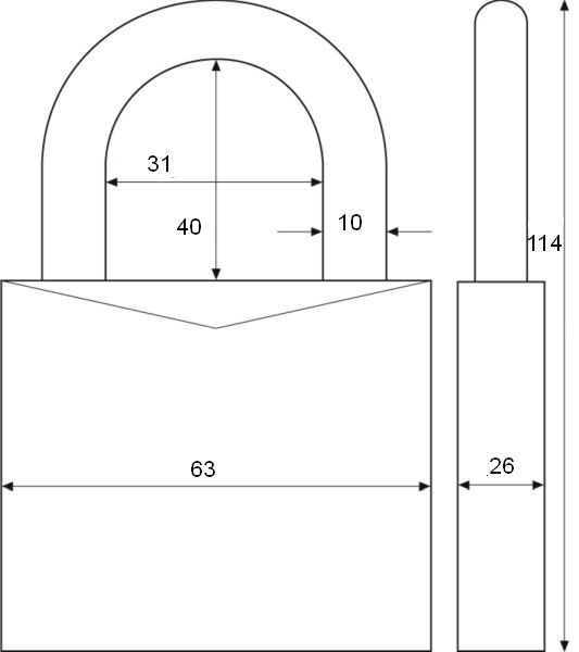 It has a double bolted hardened steel shackle, and the body is made from Zinc Die Cast.
