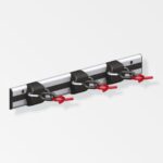 An X-Start system that comprises rail and three x-star clamps. The system itself is continuously adjustable, extremely stable with a high load capacity. The red rubberised hooks hold products safely.