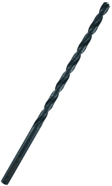 HSS twist drill ground from solid, bright finish: toughness and precision combined with excellent cutting efficiency for drilling alloyed carbon and plain steel.