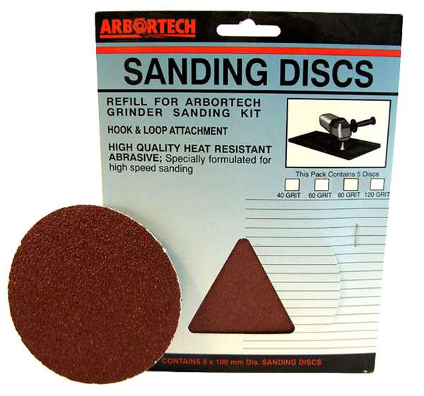 Sanding discs for use with the Arbortech carver. Velcro backed. Contains 5 discs. 40 grit.