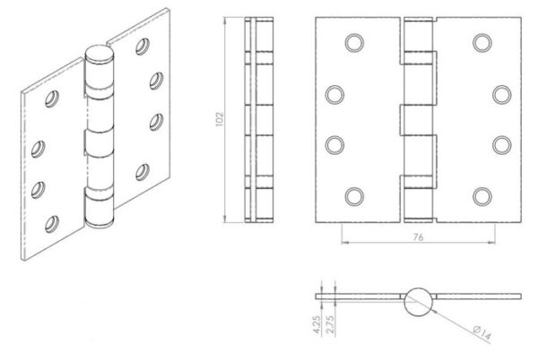 Ball Bearing Hinge Grade 13 102x76mm 201 PSS (HINGE)