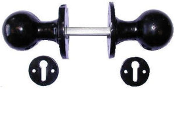 Ball Door Knob Sets.Suitable for Rim or Mortice locks.Size: 55mm.Finish: Cast – Black.