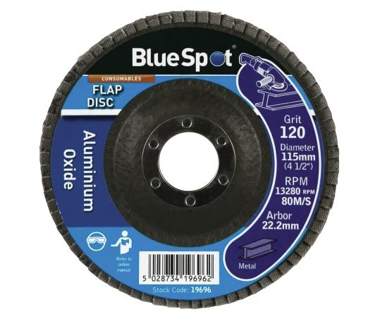 Blue Spot Sanding Flap Discs are made from aluminium oxide and are suitable for most angle grinders.