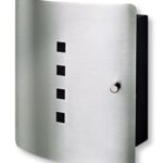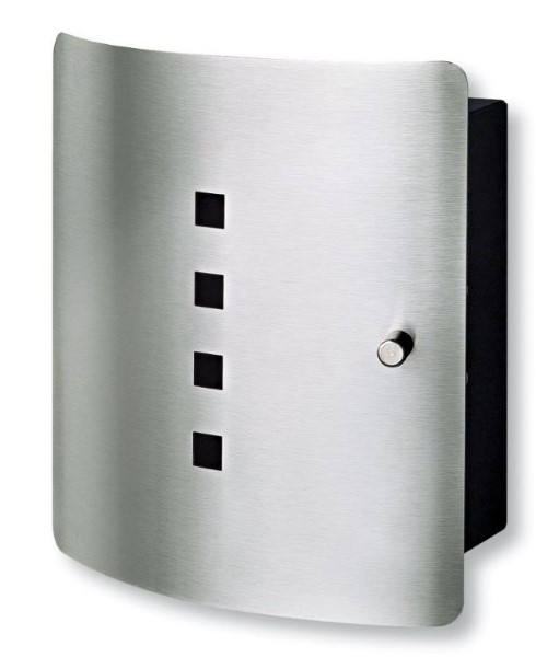 Keybox with stainless steel door and black sheet steel casing in simple design, the stainless steel door has the hinge left and opens approx. 90 degrees..