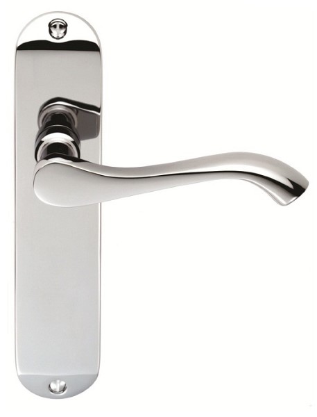 Andros Lever on latch backplate. A solid curved sweeping lever on an elegant rounded backplate with a chamfered section at the top and bottom. The smooth and solid feel oozes quality making this a deluxe handle of choice. The other feature is the single hole top and bottom, which accepts the back-to-back bolt through fixings giving a discreet and neat finish. Comes with a 10 year mechanical guarantee and is Fire door rated.