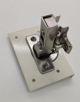 The plate is fixed to the current hinge mount, ensuring the hinge is firmly fixed to the door.