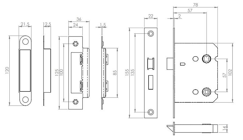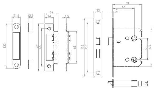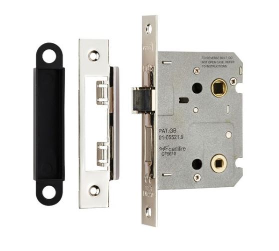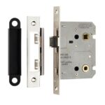 Contract Mortice Bathroom Lock 76mm (3in). Easi-T Bathroom Lock. 5mm T/Turn Follower. 57mm centres. 5yr Mechanical Guarantee. Conforms to BS EN 12209. Certifire Approved. Suitable for FD30/60 rated fire doors. Finish: Nickel Plate (NP)