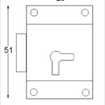 One lever, no differs. Steel riveted cap. Size of plate:51x29mm (2×1.1/8 inches). Dist. To pin: 14mm (9/16 inches). Right Handed. 1 key.
