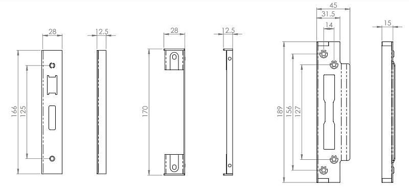Easi-T Rebate Set for Sashlock 13mm. Satin stainless steel.