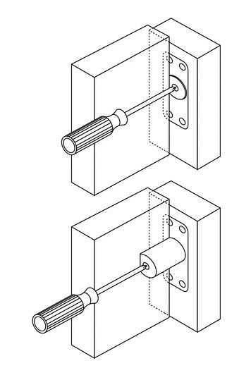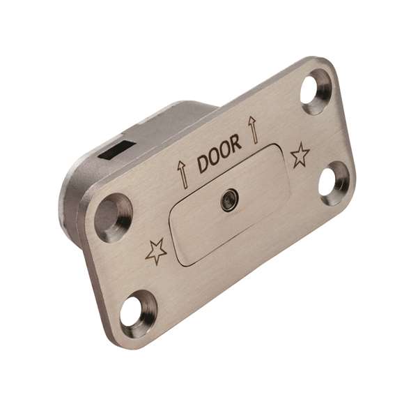 Emergency door stop. Allows double swing doors to operate as single swing when hung on centre points. The spring action has built-in pen-tip release. Specifically designed for use with a door pivot. Finish: Type 304 Satin stainless steel.