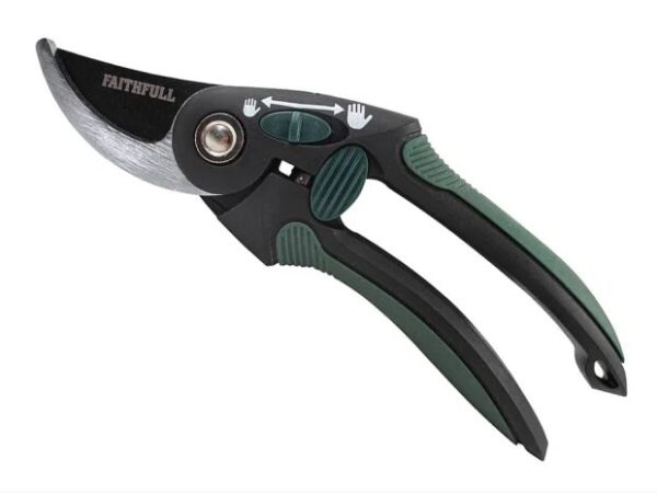 The polypropylene and fibreglass handles are soft-gripped to provide both strength and comfort when in use, with the added benefit of a two-position hand switch that adjusts the handles opening width to accommodate small or large hands, as well as thicker stems or branches.