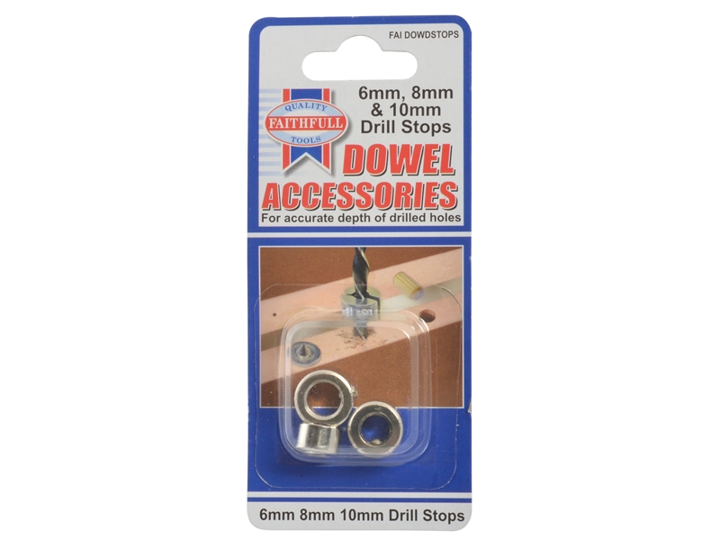 The Faithfull Dowel Drill stops clamp on to drill bits enabling a hole of the correct depth to be made.