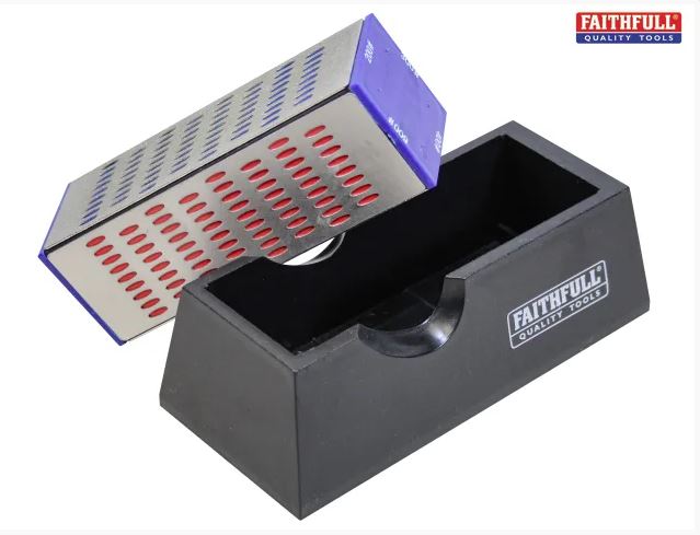 The Faithfull Diamond stones will sharpen steel, HSS and tungsten carbide tools and may also be used to abrade glass, ceramic tiles and porcelain. Diamond stones may be used dry or with water as a lubricant.