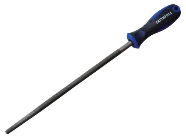 This Faithful Round Second Cut Engineers File is ideal for filing circular openings or concave surfaces and slightly tapered towards the point, with a double cut finish. For professional and frequent DIY use, fitted with a comfortable handle.