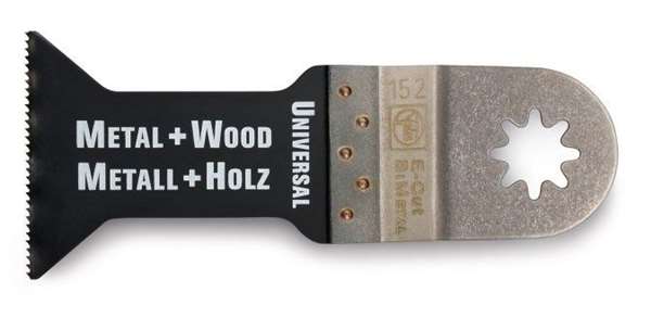Fein 44mm E-Cut universal saw blades. Wide range of applications thanks to bi-metal teeth. Saws wood up to 50mm, plastics, sheet metal up to 2mm, copper or aluminium pipes and profiles. Length 60mm, width 44mm. To fit the new quick release Multimaster. Will fit older models with an adaptor. Pack of 10 blades.