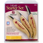 Excellent three knife starter set. Contains: Cutting Knife, Detail Knife & Roughing Knife. Honed and ready for use. Flexcut Gold polishing compound included. Flexcut have put together the perfect package to get you started in carving with knives. These knives are made with the same edge-holding properties as their gouges and chisels and come honed and ready for use. The comfortable curved ergonomic handle allows for long periods of carving without hand fatigue. Set includes: Cutting Knife (KN12), Detail Knife (KN13) and Roughing Knife (KN14) and a block of polishing compound to maintain a razor edge.