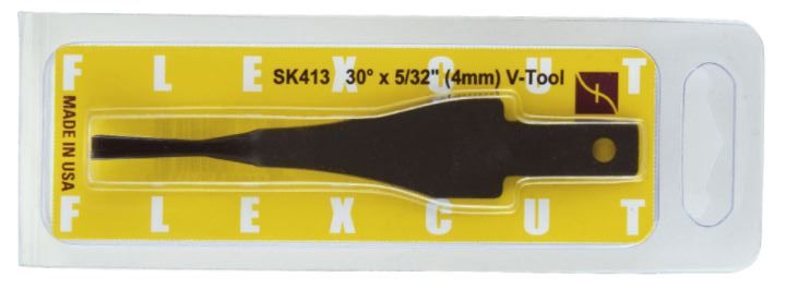 The Flexcut SK chisels will fit into the Flexcut handle (810478) for carving by hand or, by using the 810480 adaptor, into the Bosch Power Carver. 30deg x 5/32in (4mm)