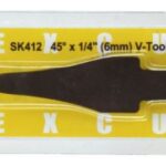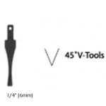 The Flexcut SK chisels will fit into the Flexcut handle (810478) for carving by hand or, by using the 810480 adaptor, into the Bosch Power Carver. 45deg Vee x 1/4in (6mm)