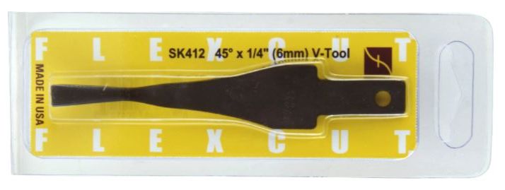 The Flexcut SK chisels will fit into the Flexcut handle (810478) for carving by hand or, by using the 810480 adaptor, into the Bosch Power Carver. 45deg Vee x 1/4in (6mm)