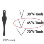 The Flexcut SK chisels will fit into the Flexcut handle (810478) for carving by hand or, by using the 810480 adaptor, into the Bosch Power Carver. 45deg x 5/32in (4mm)