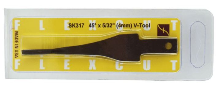The Flexcut SK chisels will fit into the Flexcut handle (810478) for carving by hand or, by using the 810480 adaptor, into the Bosch Power Carver. 45deg x 5/32in (4mm)