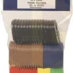 Plastic colour coded frame packers (45mm x 55mm) Mixed pack of 6 thicknesses Ideal for packing-out battens and for aligning kitchen units Pack contains approx 25 x yellow 1mm, 15 x green 2mm, 15 x blue 3mm, 15 x red 4mm, 15 x brown 5mm and 15 x black 6mm 300 pack also available