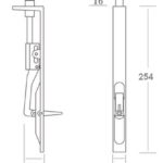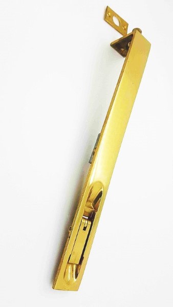 Lever action flush bolt, 254x25mm. Shoot size: 11 diameter. Length of throw: 16mm. High quality coil spring. Smooth easy action. parallel line of movement. Polished Brass finish.
