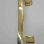 Deco pull handle. Bolt through fixing. 300mm overall. Polished brass finish. Left hand.