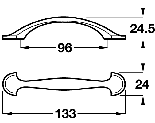 NORFOLK bow handle, 96 mm hole centres. Finish: Antique pewter