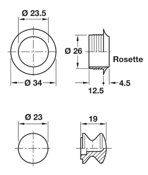 Push Lock Knob and Rosette, for 16 mm Door Thickness