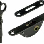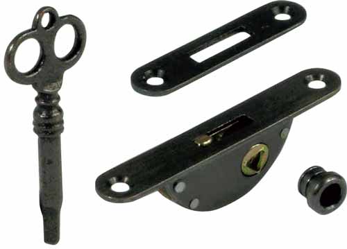 Accessories: 1 triangular pin key, 1 bush and 1 striking plate, all bronzed