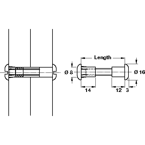 Plastic head element with galvanised steel threaded pin and screwdriver slot