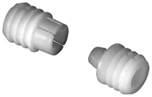 Female element has four slots, male element incorporates a tapered plug which locks into position, ensuring a secure seat in the material and a strong joint