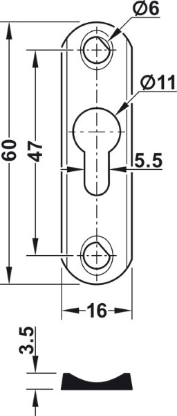 With one keyhole, for hooking into raised head countersunk screw
