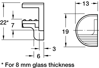 Glass shelf support, screw fixing, for 8/10/12 mm glass thickness