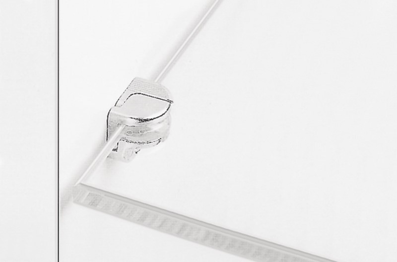 Shelf width must be 6 ย 7 mm less than the inside cabinet width. For insertion and tightening in a drilled hole