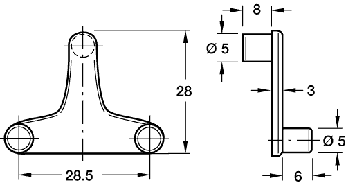 Plugs into a Diam: 5 mm hole, after which the wooden shelf is slid into place