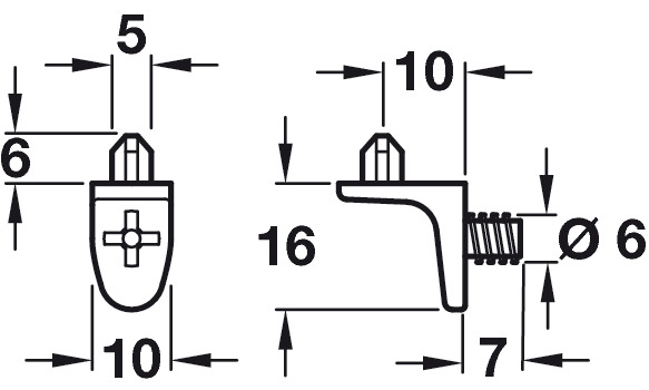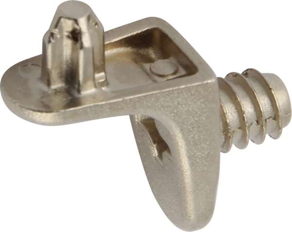 Shelf Support, Plug in, with Thread, for 5 mm Hole, for Wooden Shelves. Nickel plated