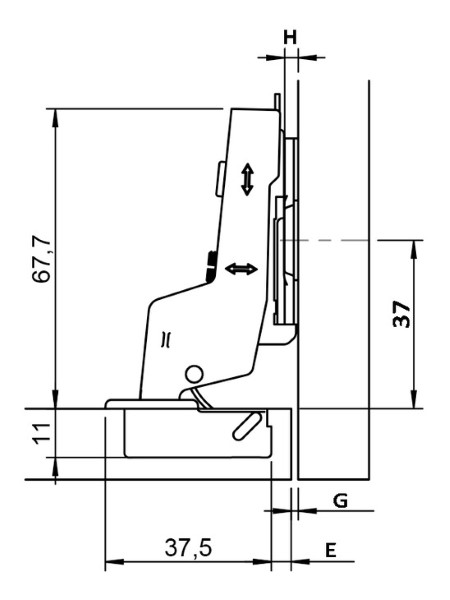 Adjustment facility: Side adjustment +3 mm. Height adjustment 2mm (via mounting plate). Depth adjustment 2mm