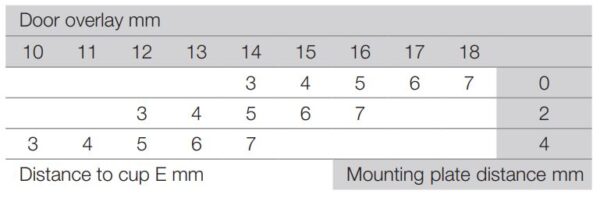 Concealed Cup Hinge, Metalla range, 110deg Integrated Soft Close, Full Overlay Door Mounting, with Standard Depth Adjustment