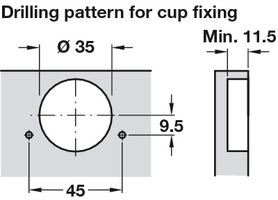 Concealed Cup Hinge, 110deg Standard, Inset Mounting, with Standard Depth Adjustment, Häfele Screw fixing cup, click on arm, 45/9.5