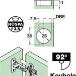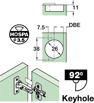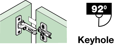 Essentials standard 92deg hinge, Diam: 26 mm cup, screw fixing, keyhole arms