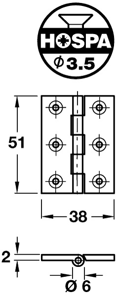 Heavy gauge butt hinge 207, 51 x 38 mm