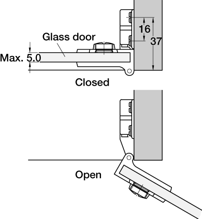 For maximum glass thickness 5 mm
