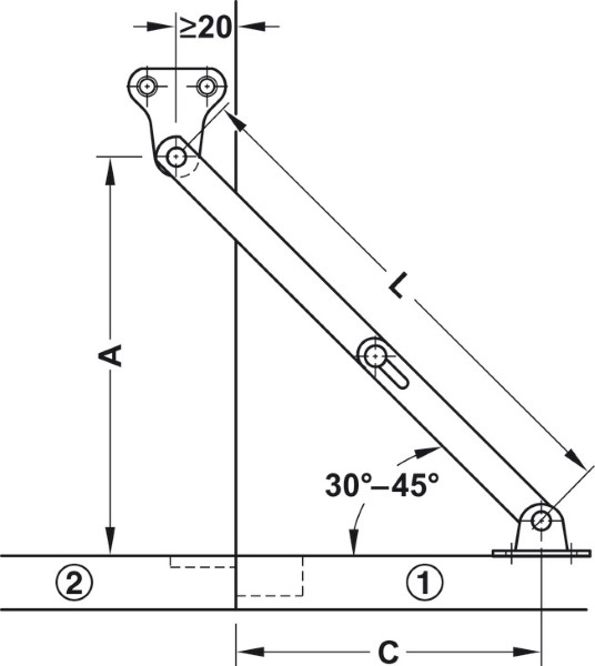 Flap Stay, for Wooden Flaps, with Slotted Guide in Joint